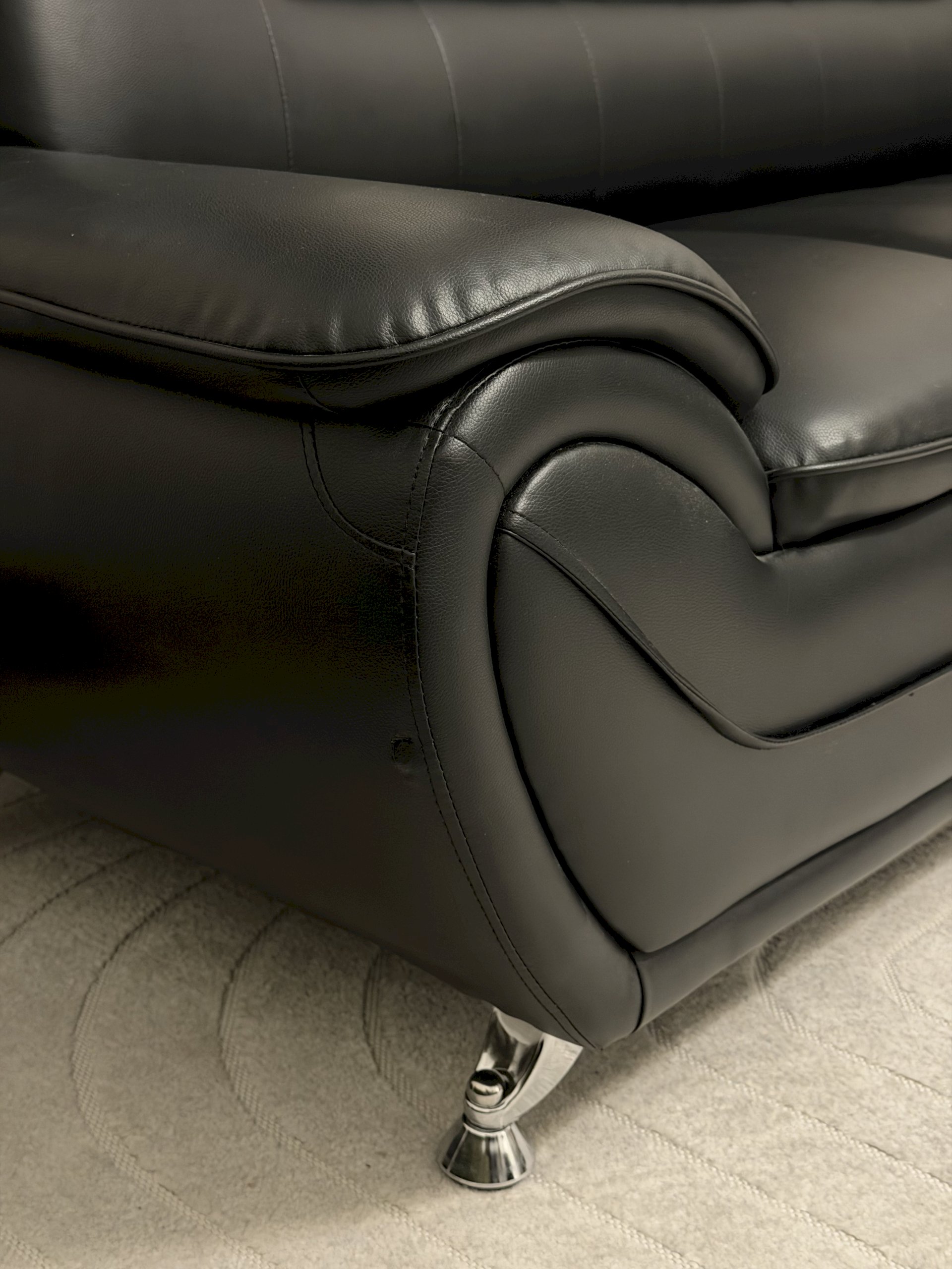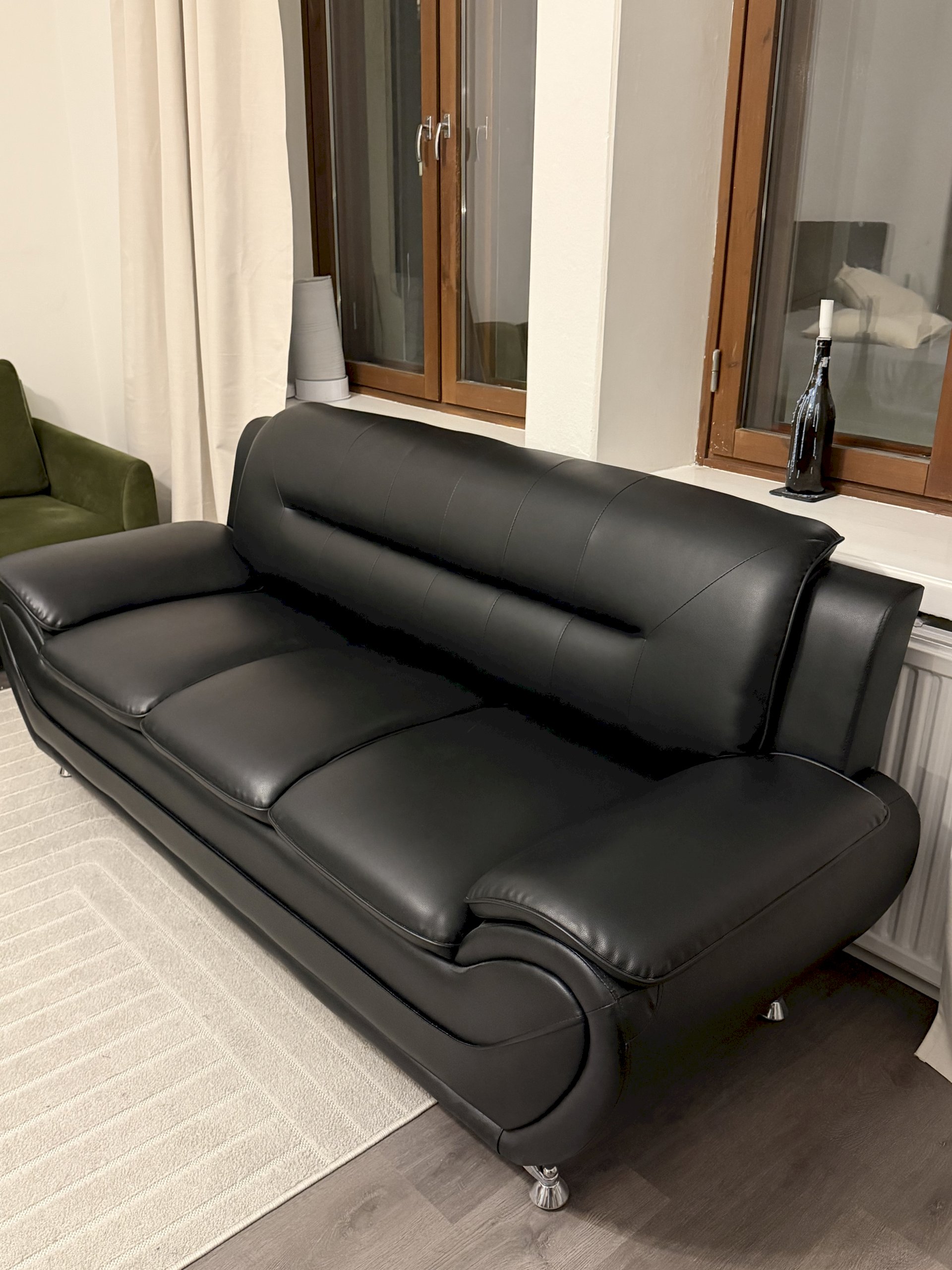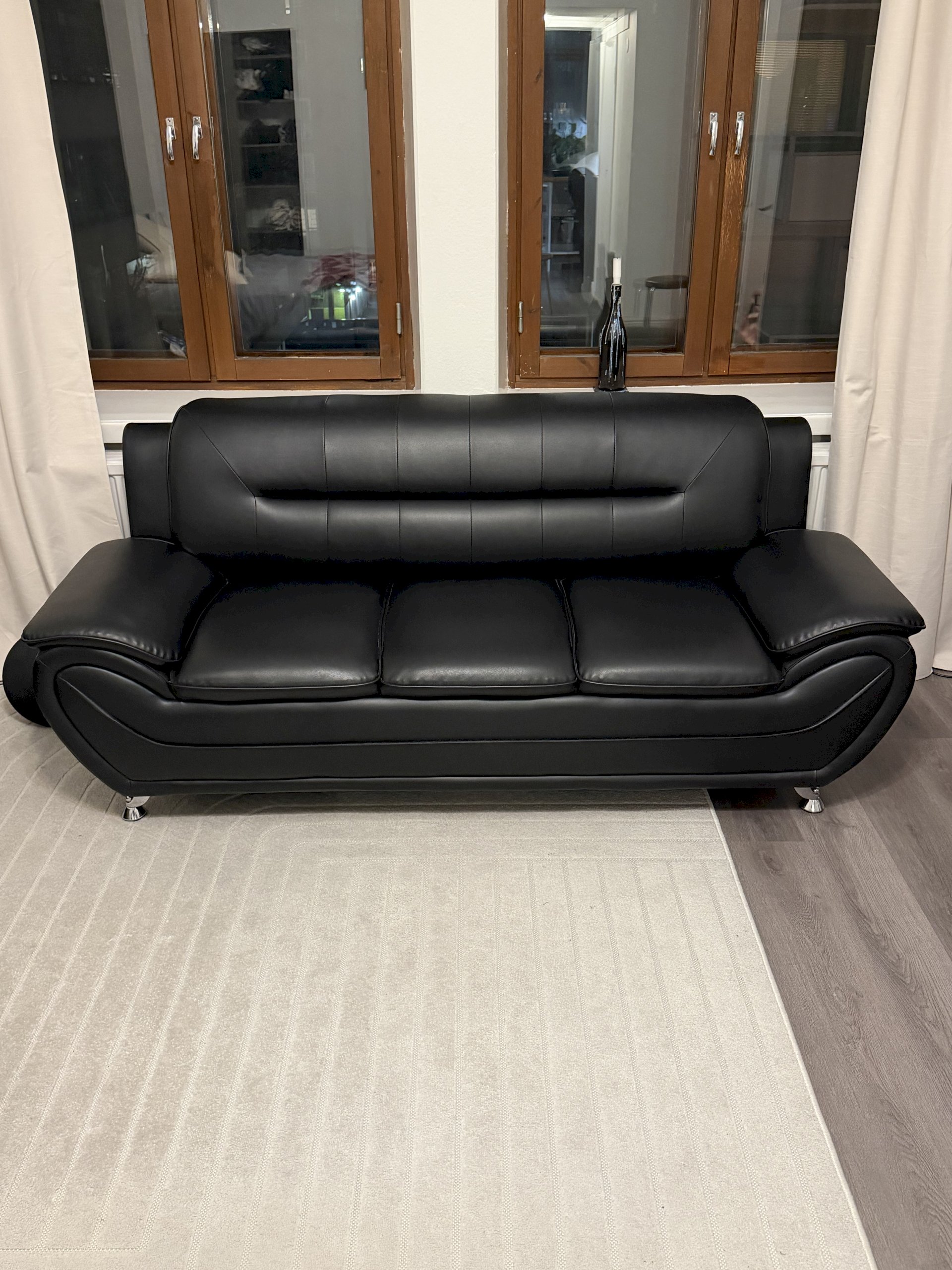 Vuoden vanha, 3-istuttava sohva, verhoiltu laadukkaalla ja kestävällä keinonahalla.