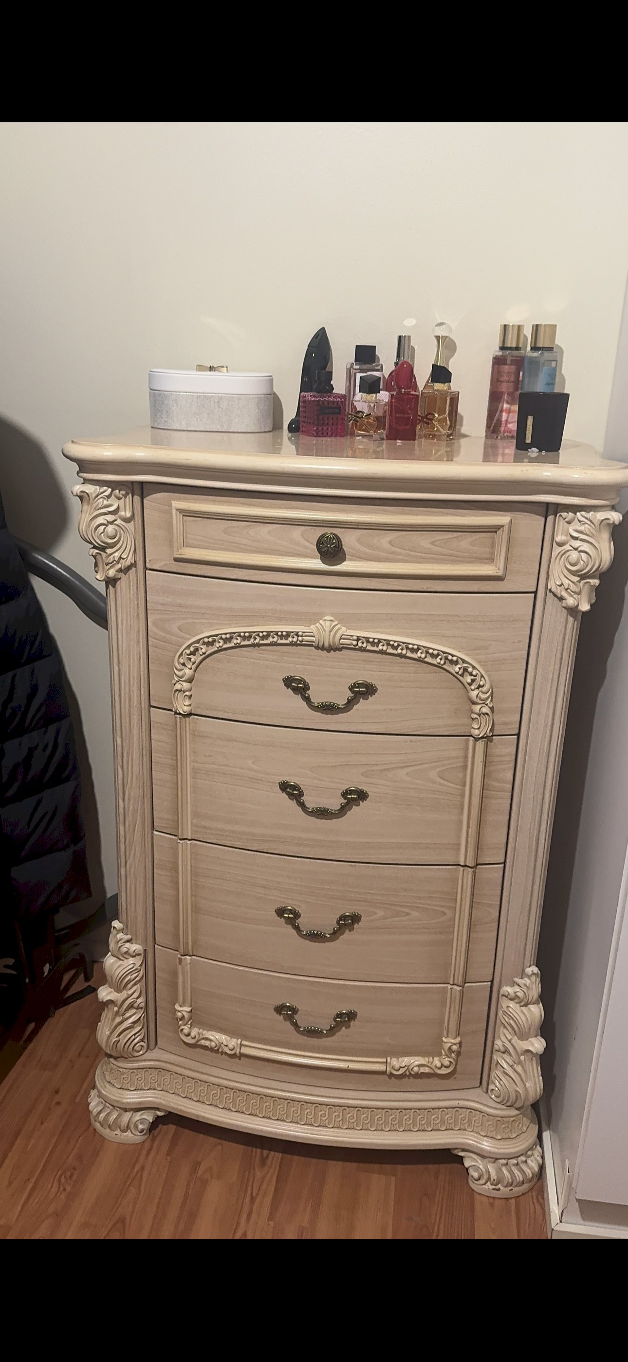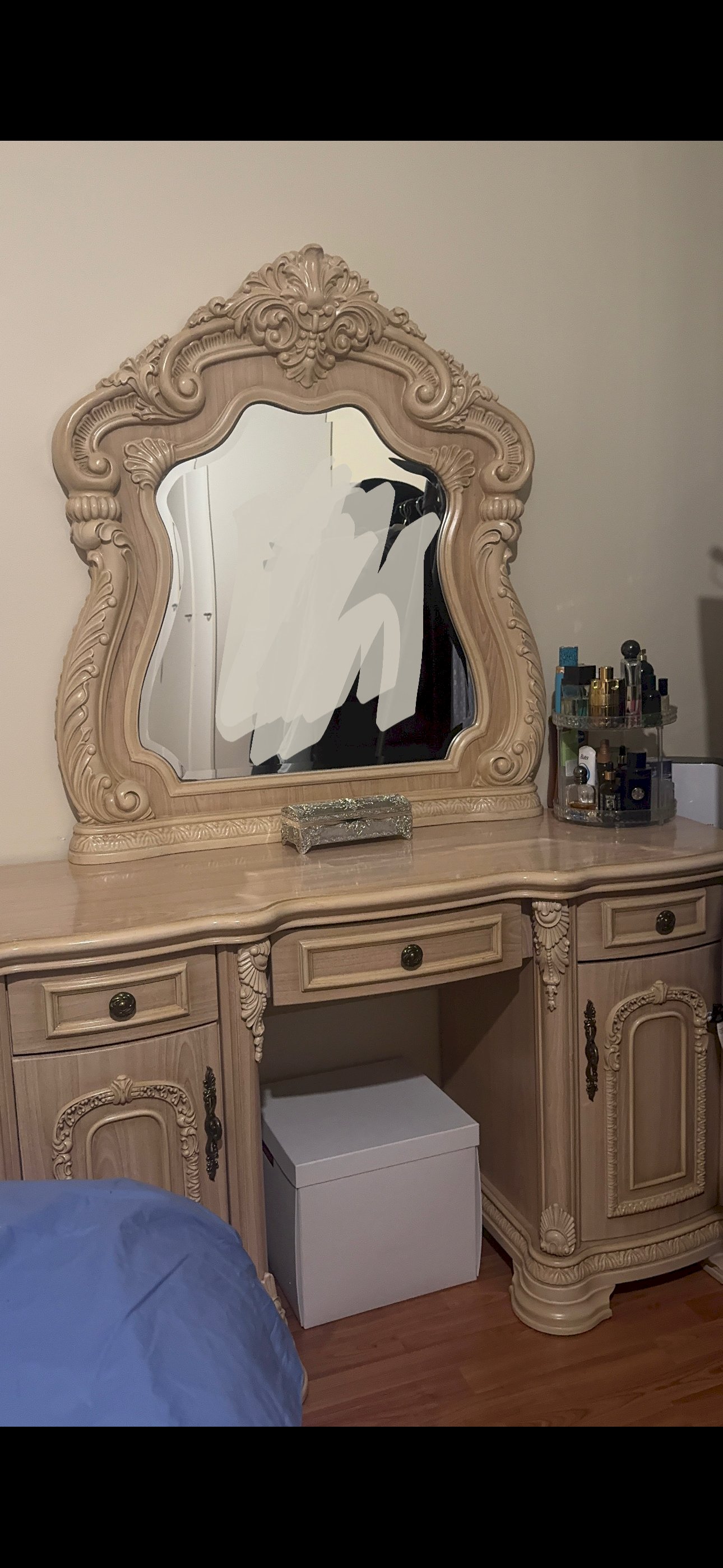 Myydään kaunis ja näyttävä klassinen/barokkityylinen makuuhuonesetti, joka sisältää