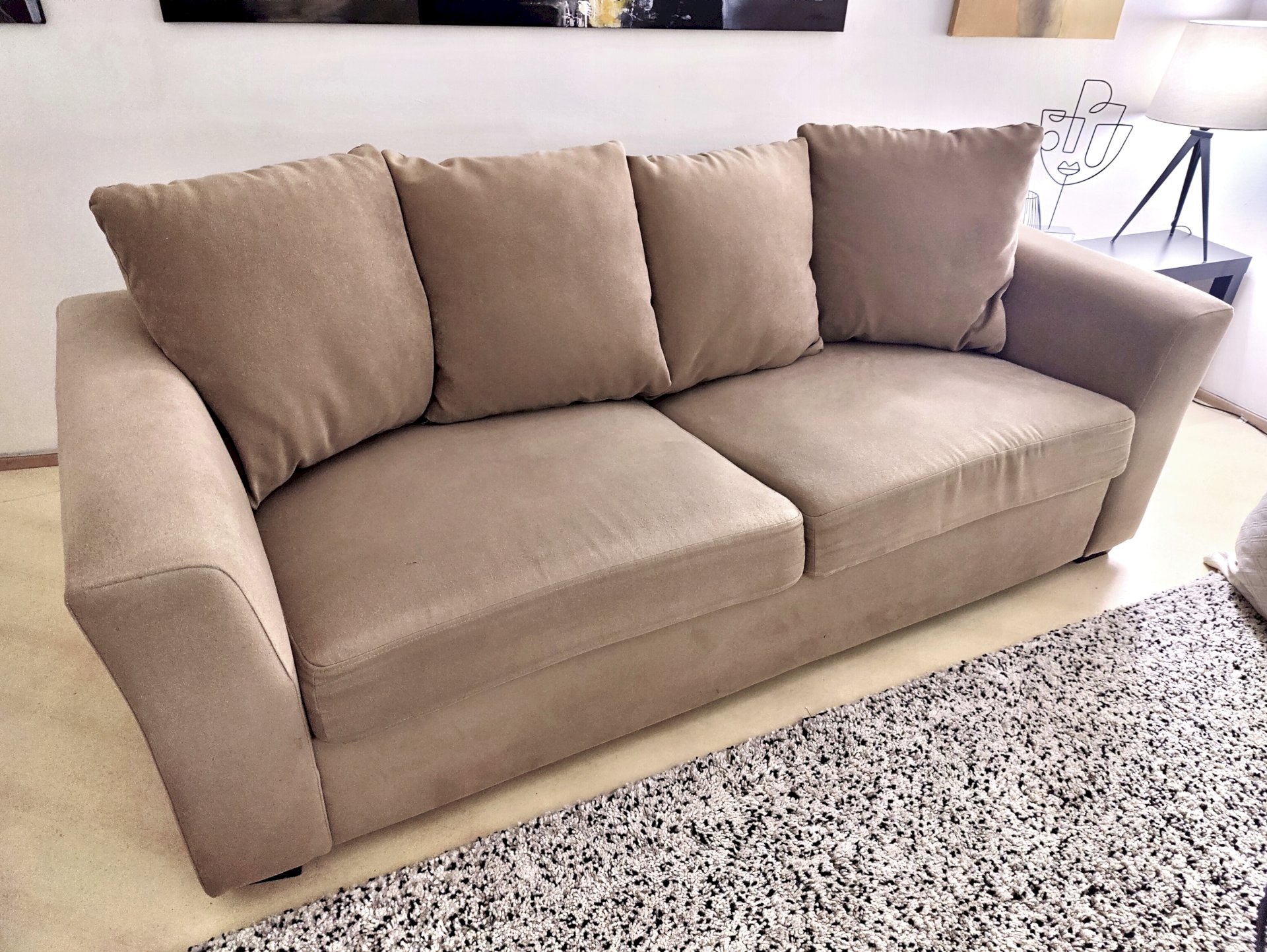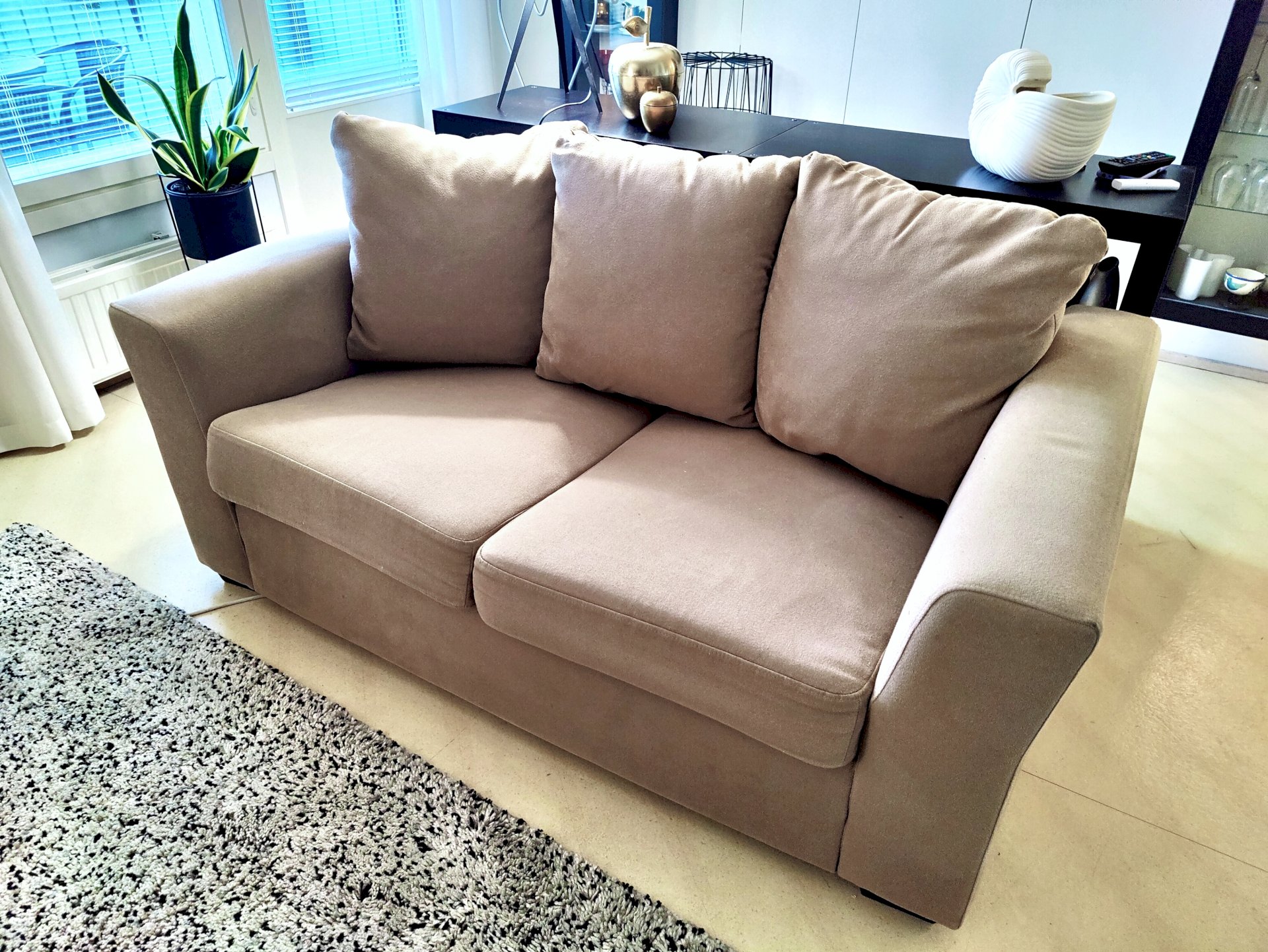 Laadukas ja virheettön, hiekan värinen sohvaryhmä, kahden ja kolmen istuttavat. Ollut erittäin siistissä, savuttomassa ja eläimettömässä kodissa. Myydään koska eivät mahdu uuteen asuntoon. Yhteishinta 120, mahdollista ostaa myös erikseen.