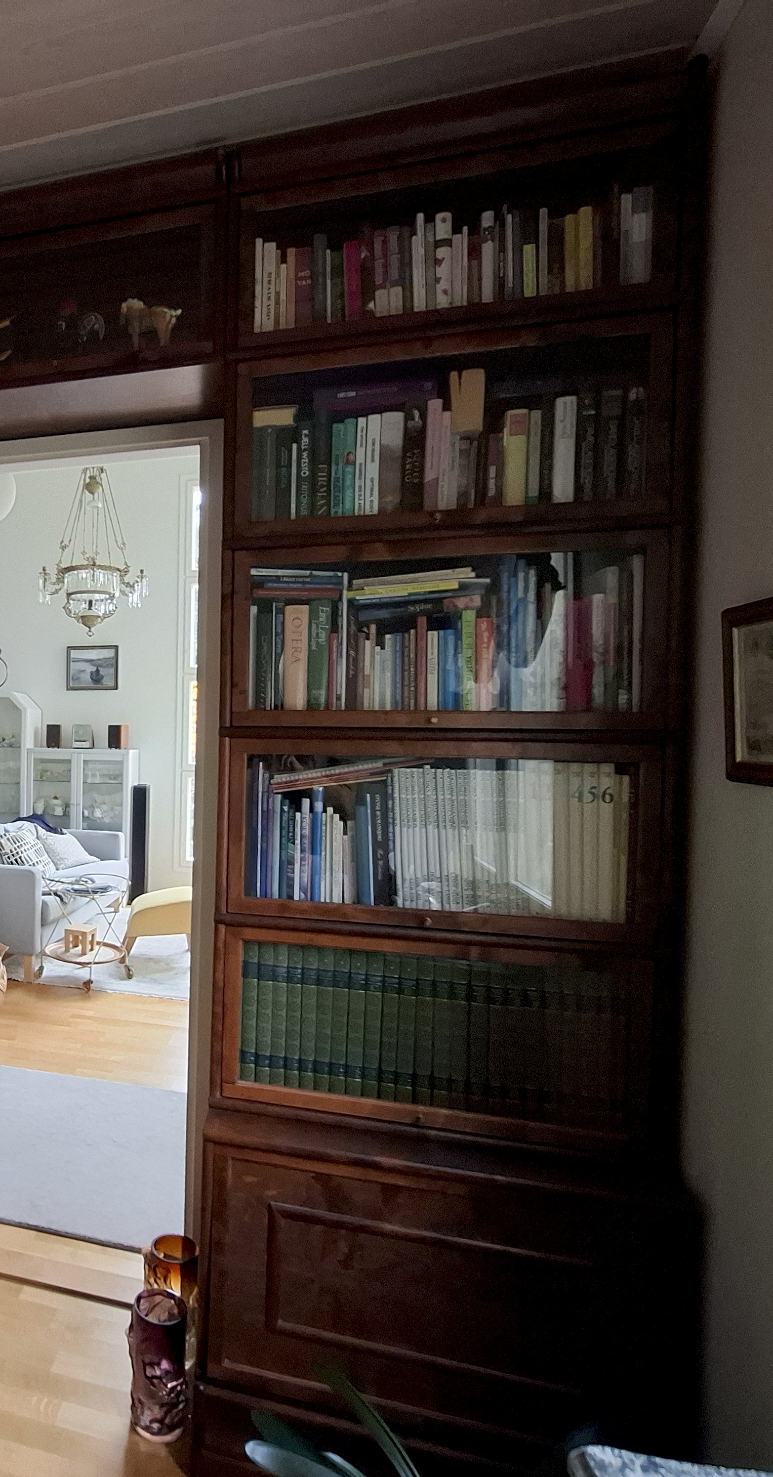 Molemmat sivut kokonaiuudessa ovat mitoiltaan identtiset: lasiovella varustettujen elementtien leveys: 76 cm x korkeus: 36 cm. Keskellä ylhäällä olevat 2 moduulia eivät ole ihan yhtä leveät.