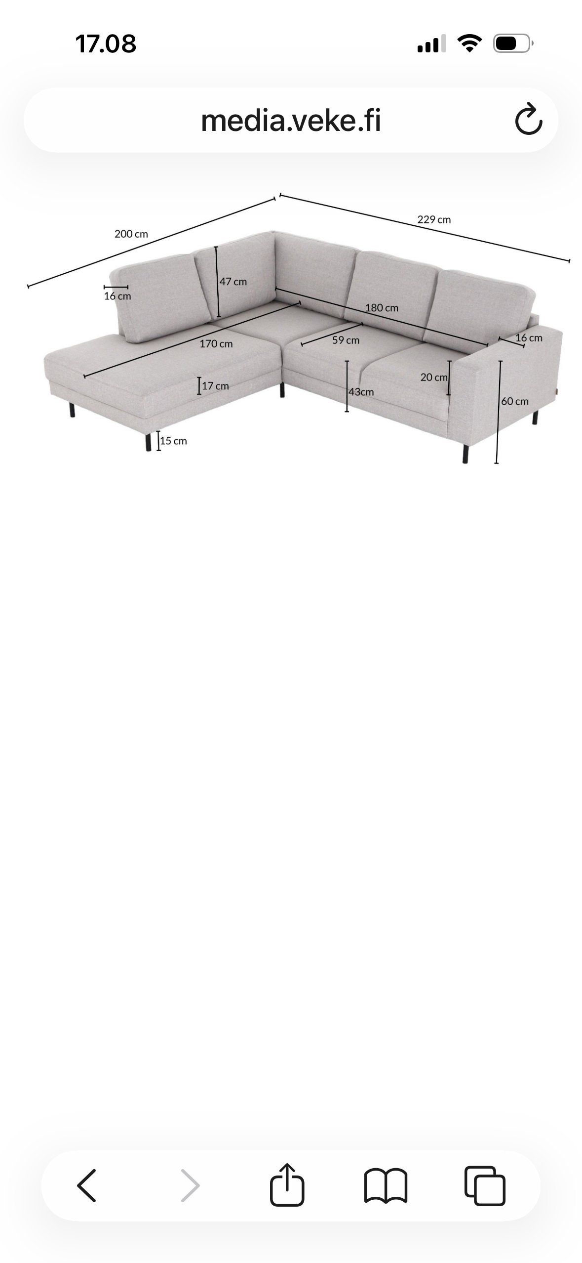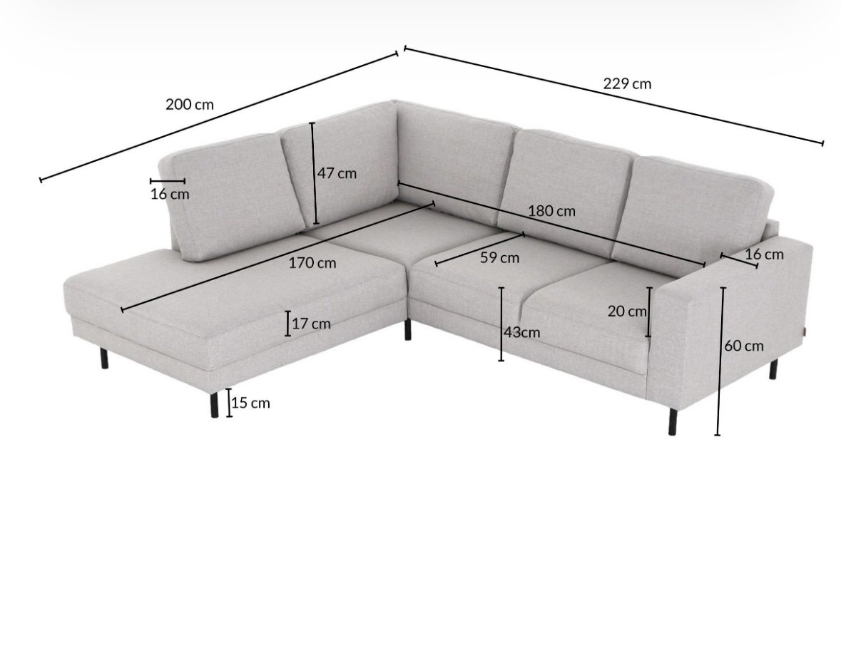 Mitat: Korkeus: 60 cm, Leveys: 229 cm, Syvyys: 59 cm
